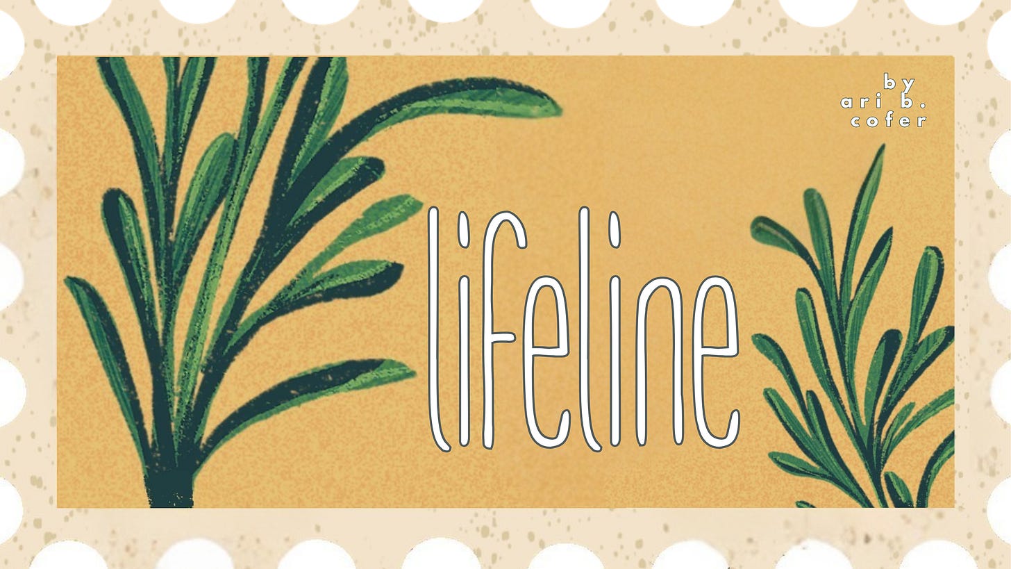 Lifeline: a snail mail subscription consists of short, newsletter-like updates, poems, mental health resources, links to playlists, and short features from your favorite authors describing why readers should stay alive this month (among other goodies I find along the way!).